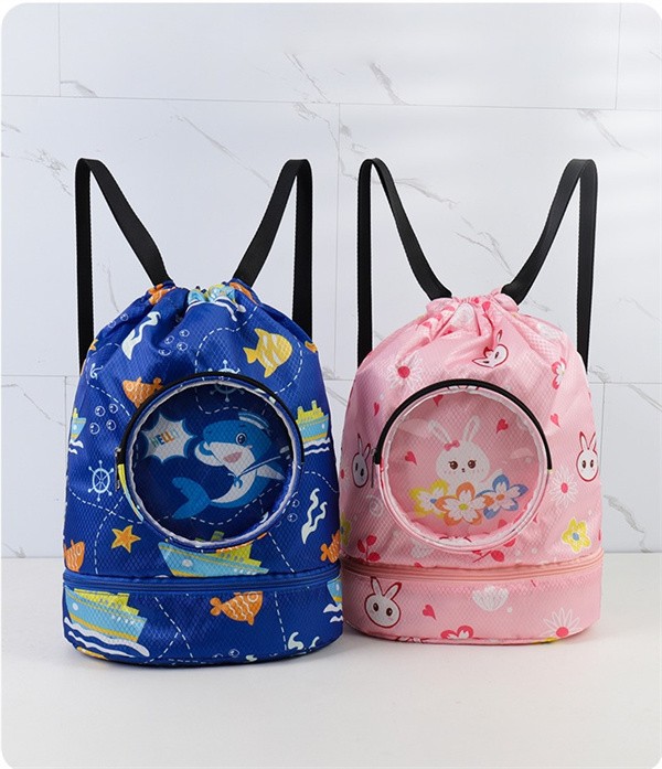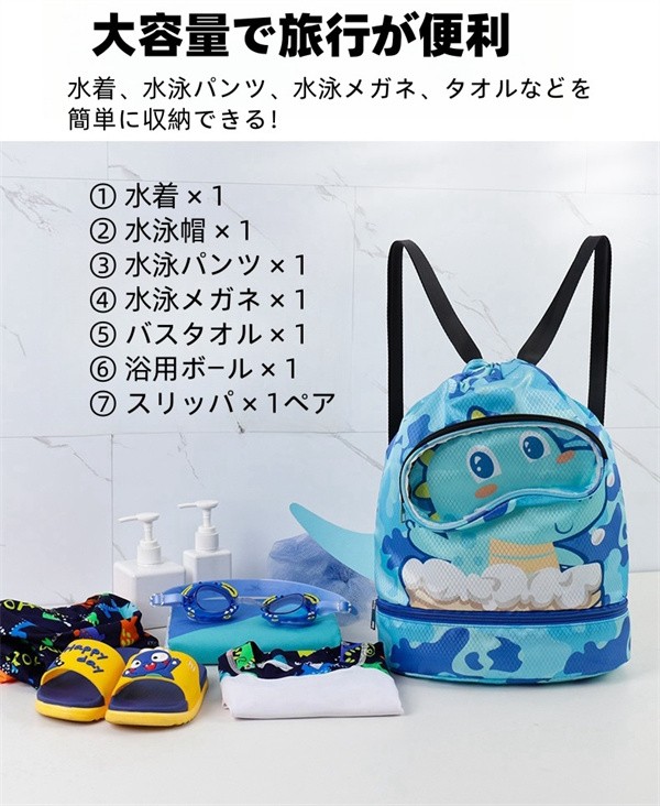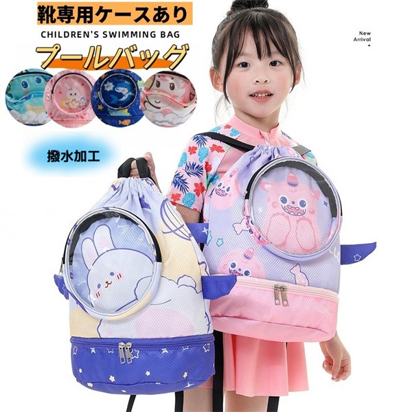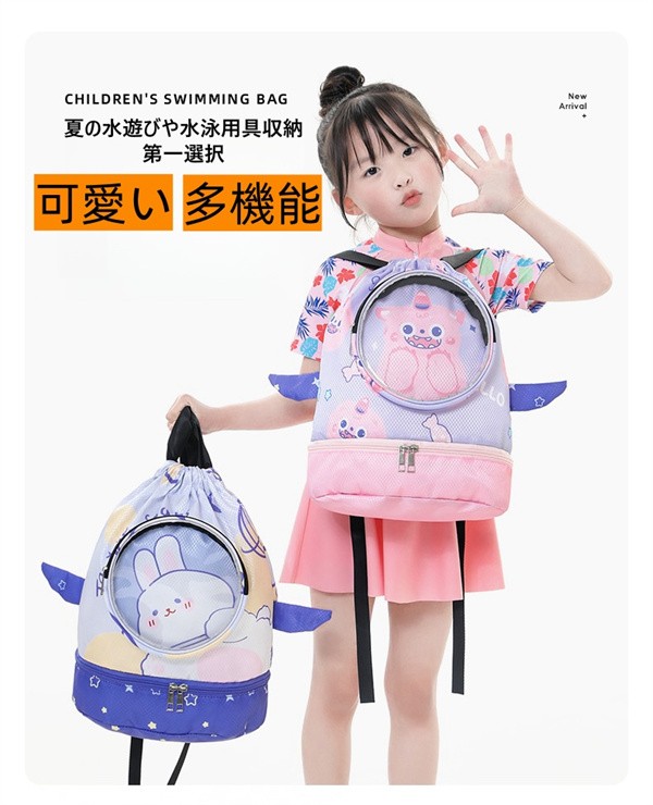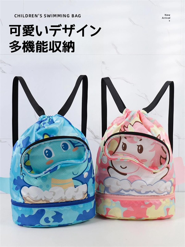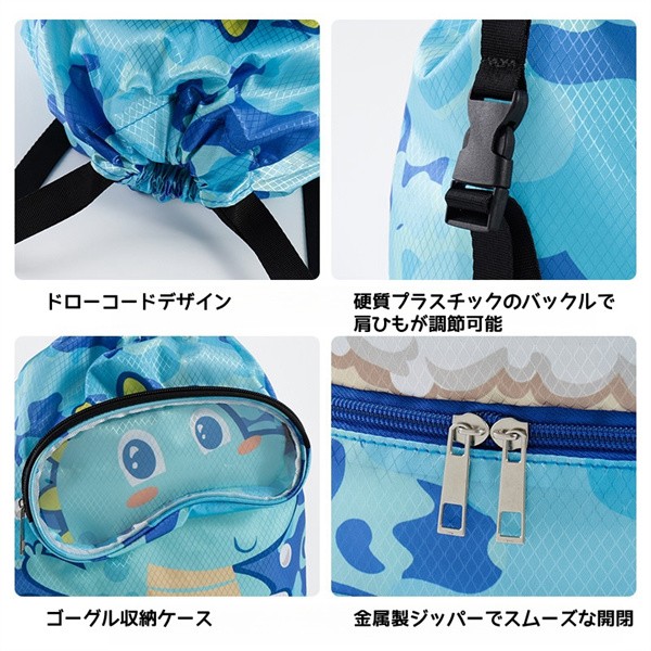 かわいい 子供用 水泳バッグ 撥水 水着収納袋 キッズ プールバッグ スポーツ用ポータブルビーチリュック 仕切り収納 ブーツ収納 水泳ゴーグル収納