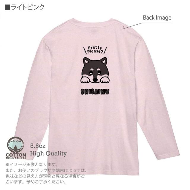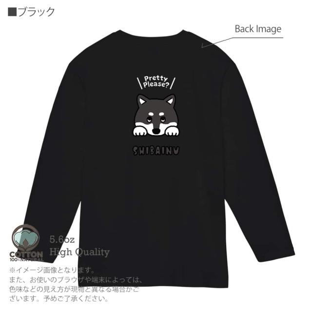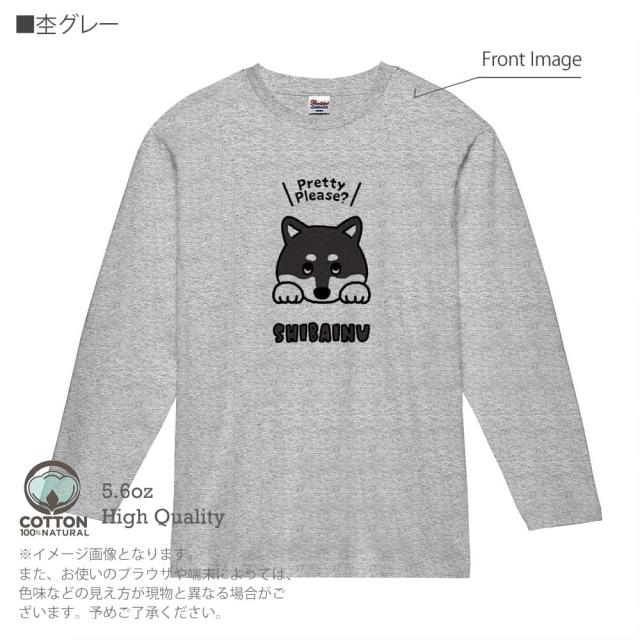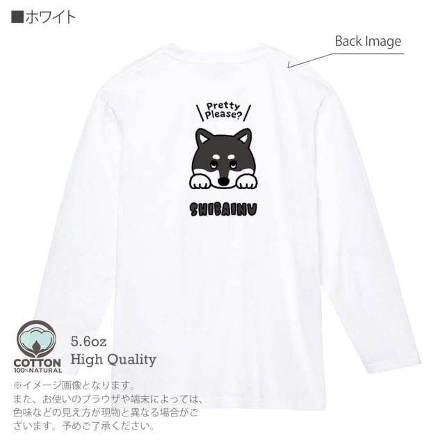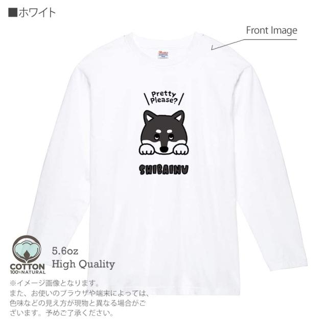 動物 Tシャツ 長袖 柴犬のおねだり顔_黒柴(wakat) 5.6oz (オンス) 綿100% メンズ レディース 洗濯 大きいサイズ ホワイト ブラック グレー ピンク 白 黒 灰色 桃色 ロンティー 春 夏 秋 冬 オシャレ イヌ いぬ 雑貨