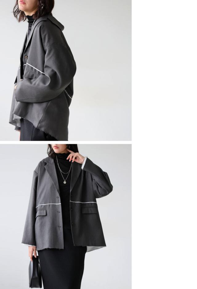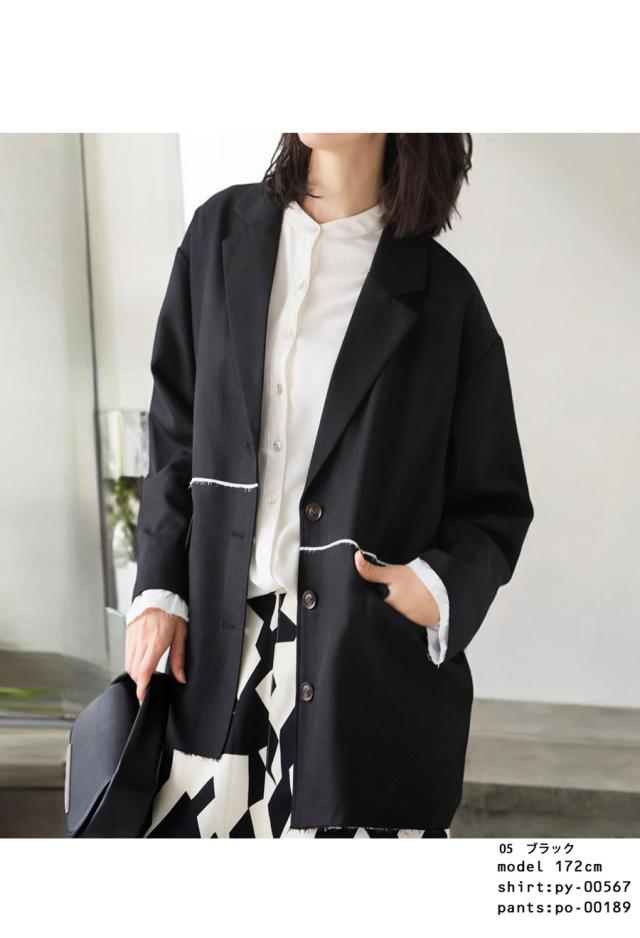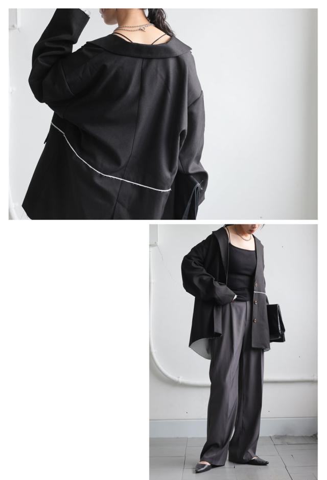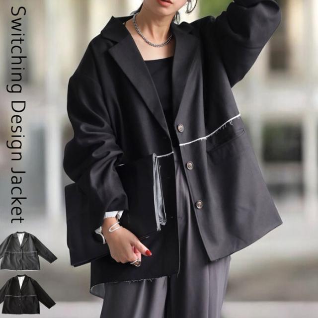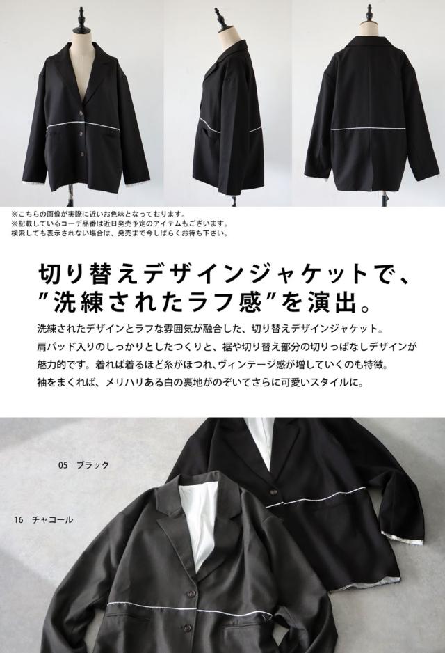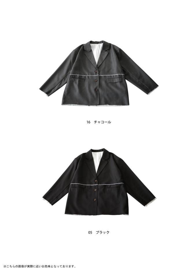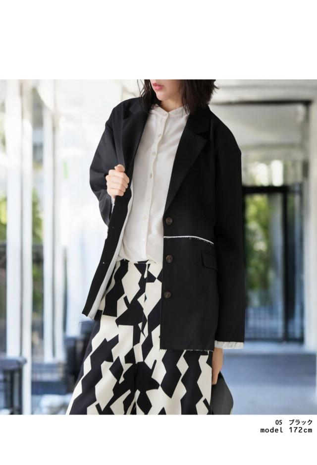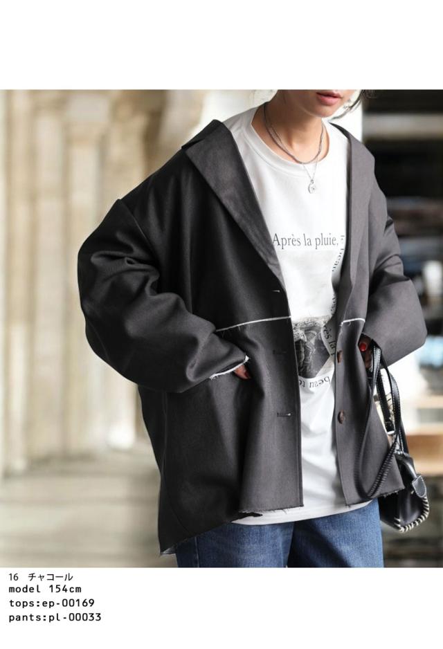 ep-00152 羽織り 長袖 テーラード 切り替え 無地 配色 切りっぱなし 袖折り返し 肩パッド 前開き 裏地付き ゆったり シンプル きれいめ 上品 モード 体型カバー 着痩せ 大きめ