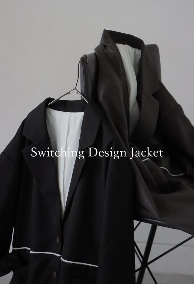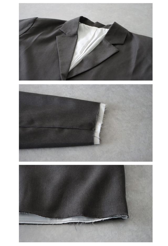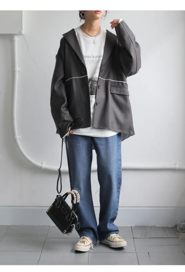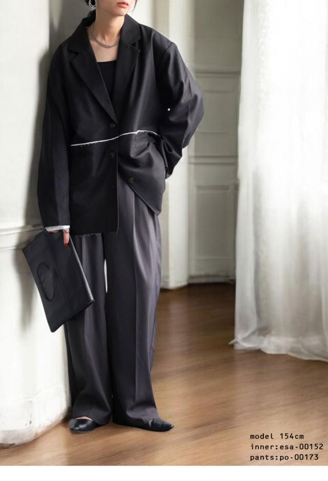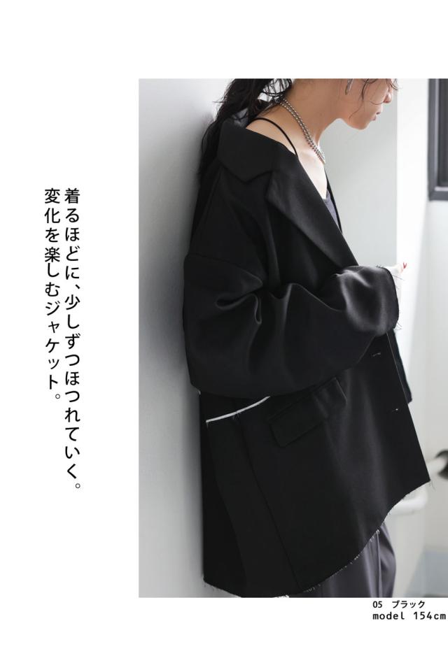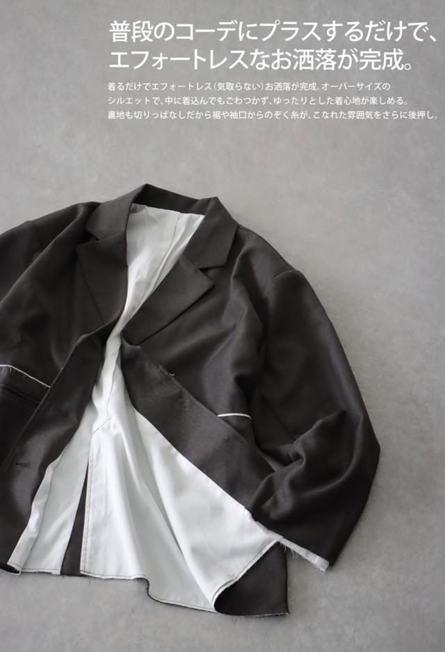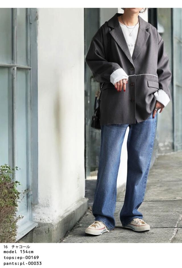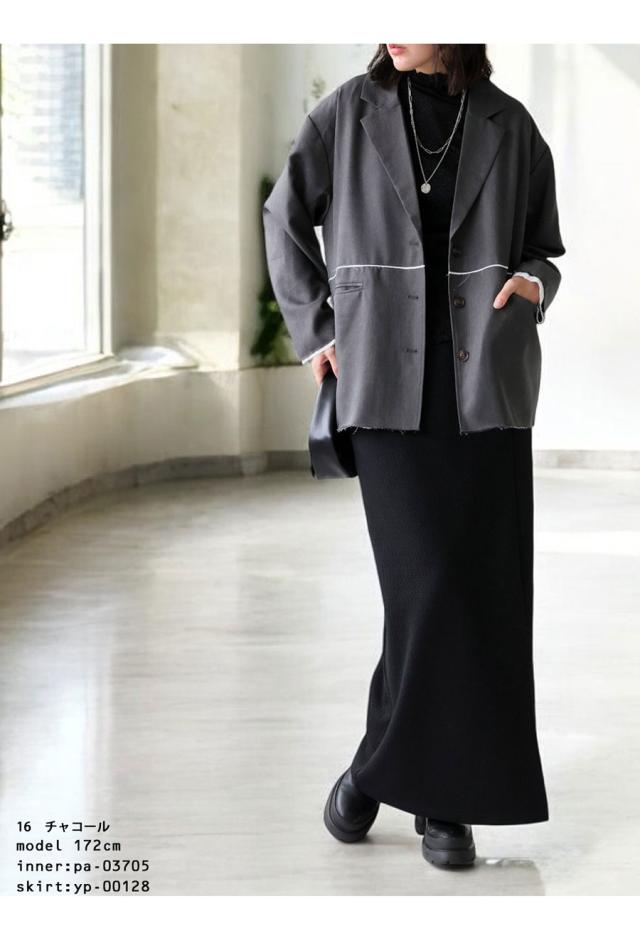 ep-00152 羽織り 長袖 テーラード 切り替え 無地 配色 切りっぱなし 袖折り返し 肩パッド 前開き 裏地付き ゆったり シンプル きれいめ 上品 モード 体型カバー 着痩せ 大きめ