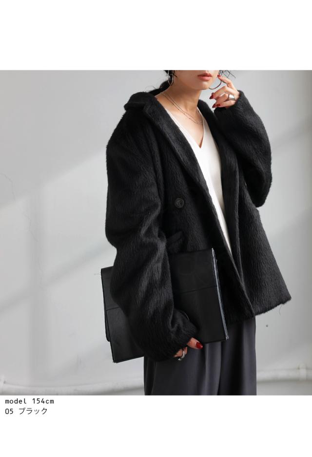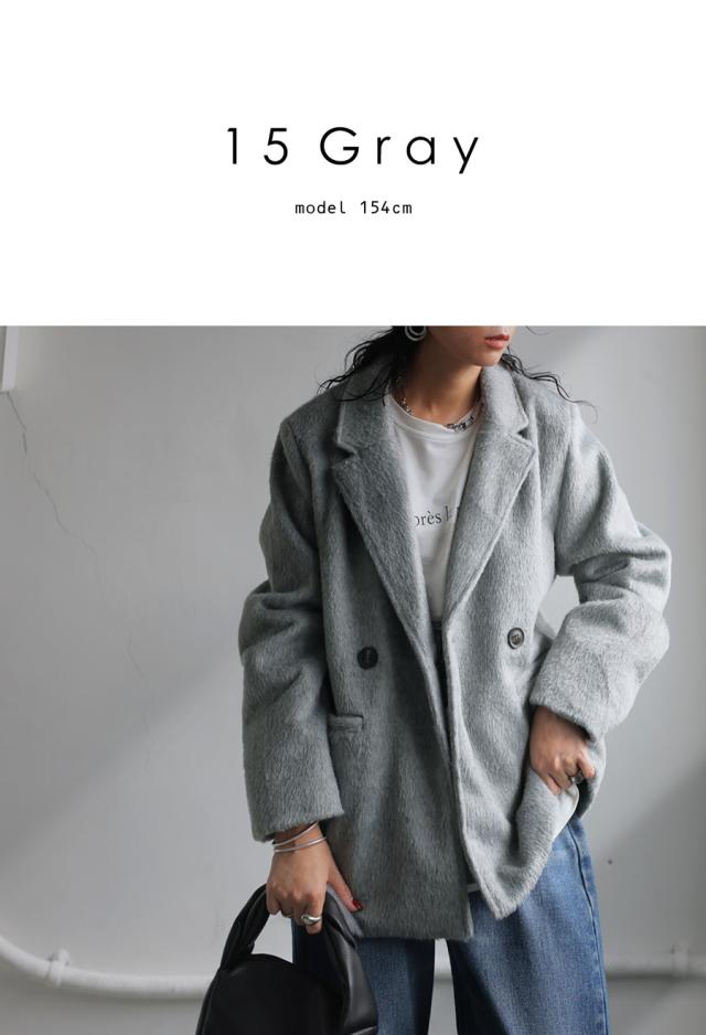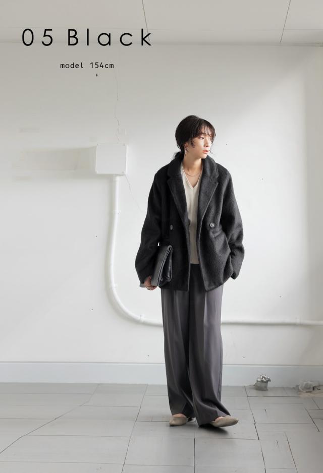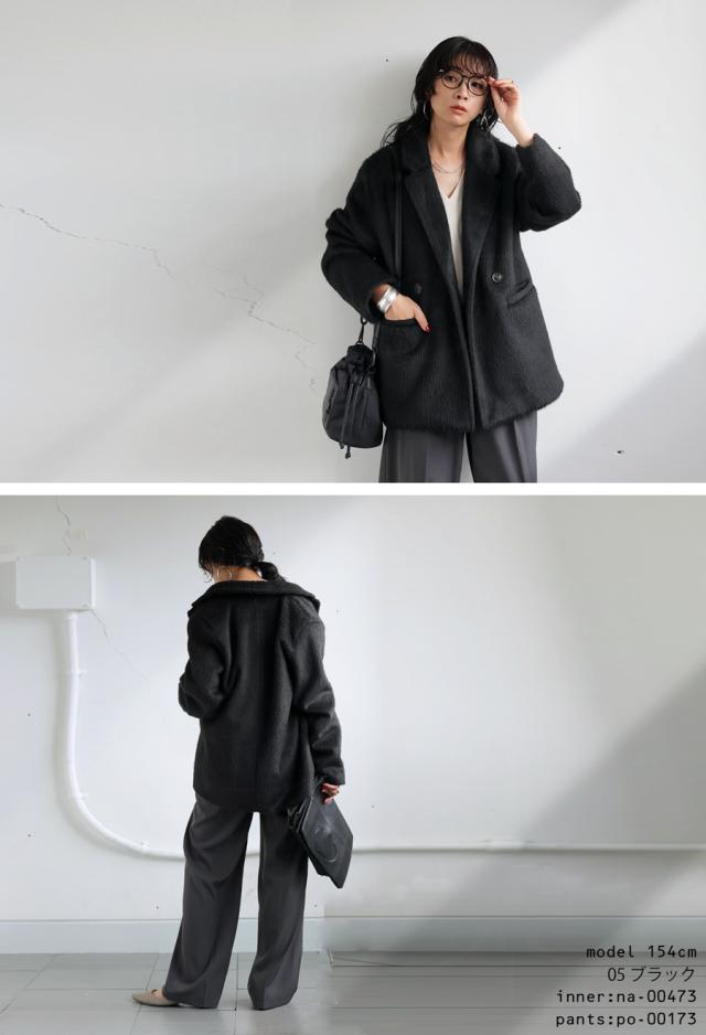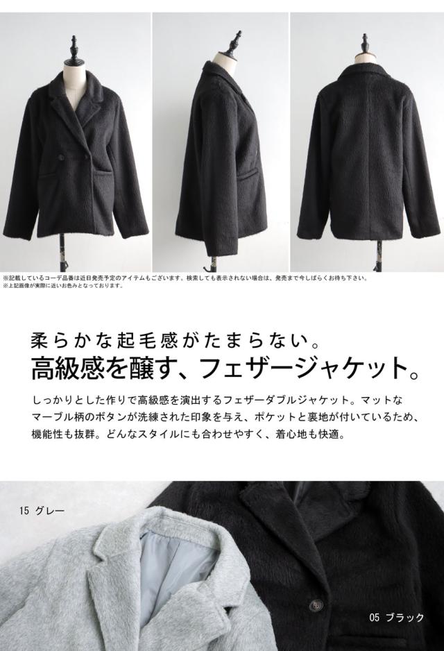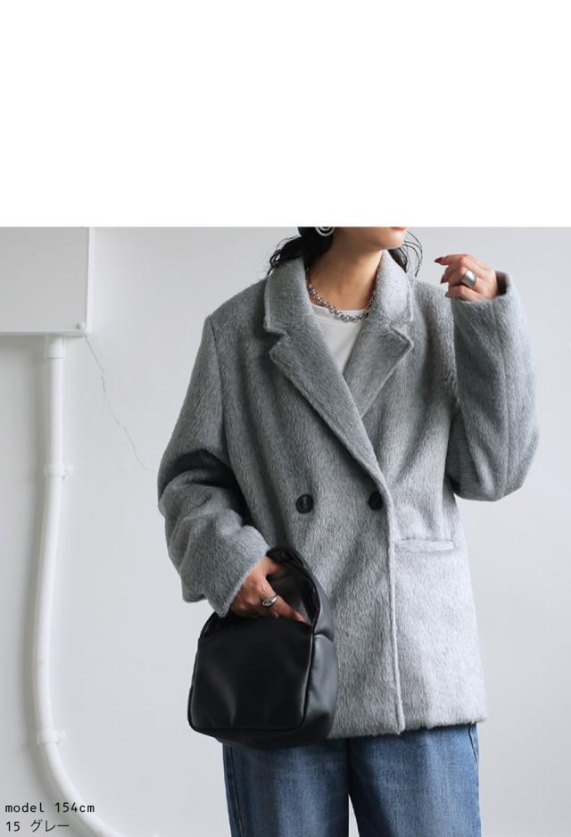 ep-00159 長袖 ショート丈 テーラード 無地 フェザー 起毛感 前開き ダブルボタン ポケット付き ゆったり シンプル 体型カバー 脚長効果 大きめ ショートコート ウィンターコート