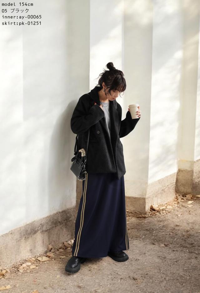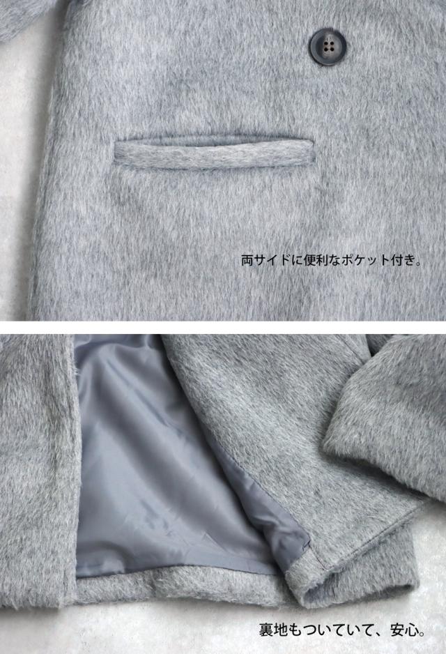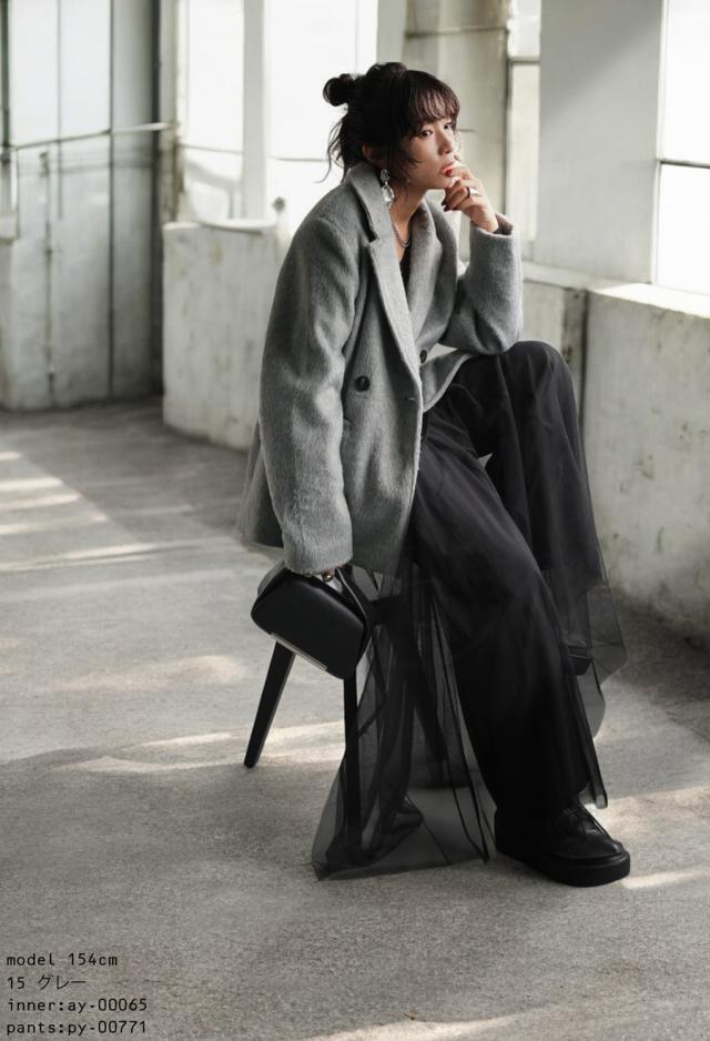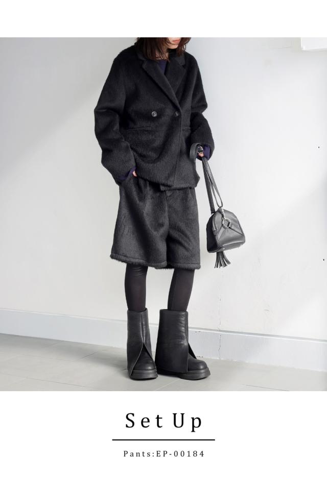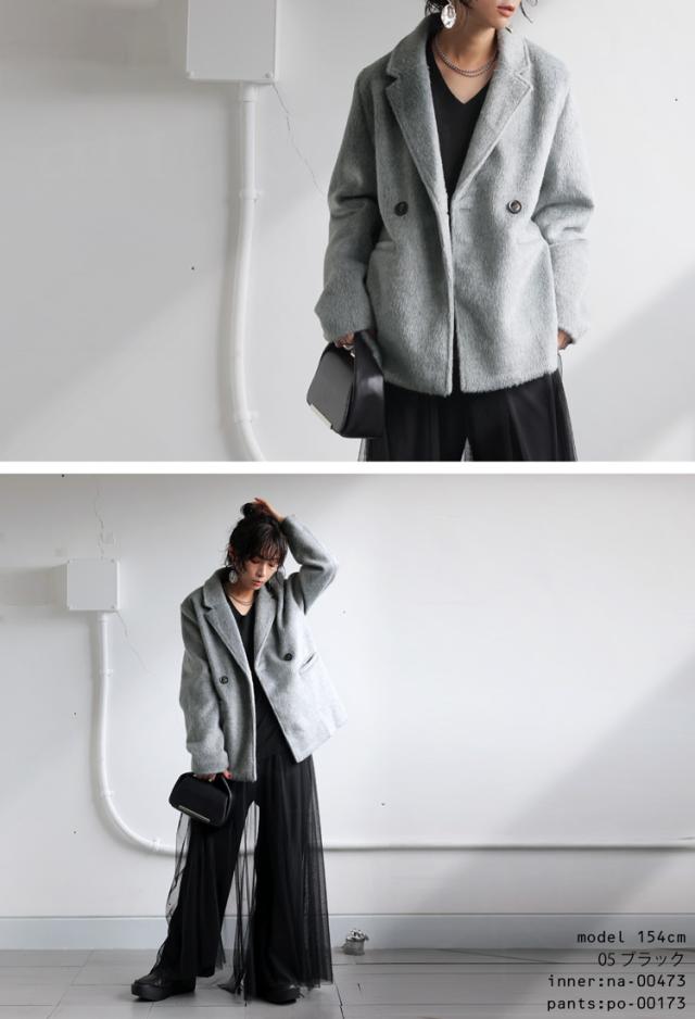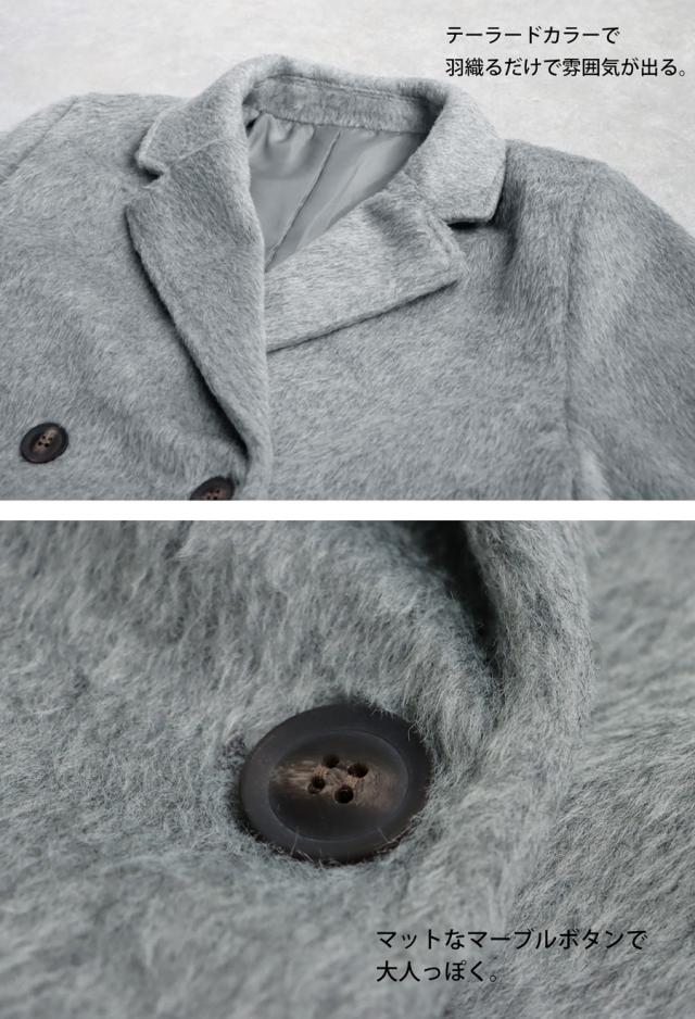ep-00159 長袖 ショート丈 テーラード 無地 フェザー 起毛感 前開き ダブルボタン ポケット付き ゆったり シンプル 体型カバー 脚長効果 大きめ ショートコート ウィンターコート
