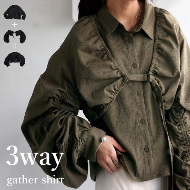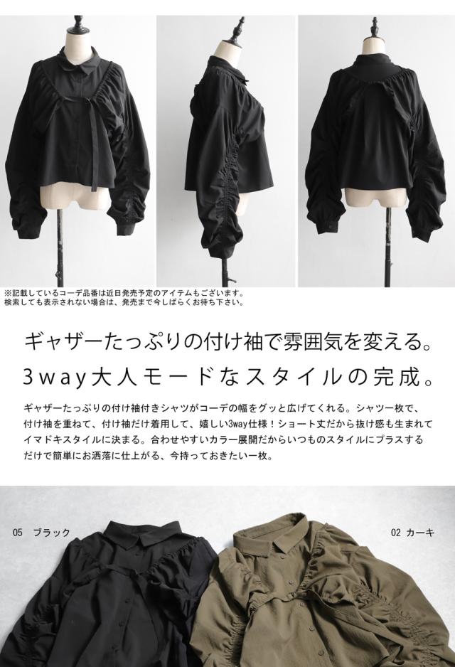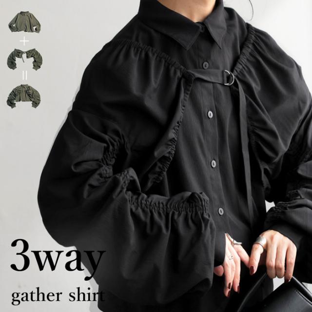 ギャザーがたっぷり寄った付け袖で、一気に雰囲気変える便利な3wayシャツ。