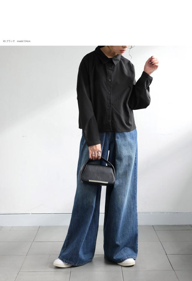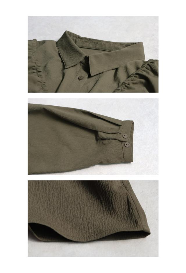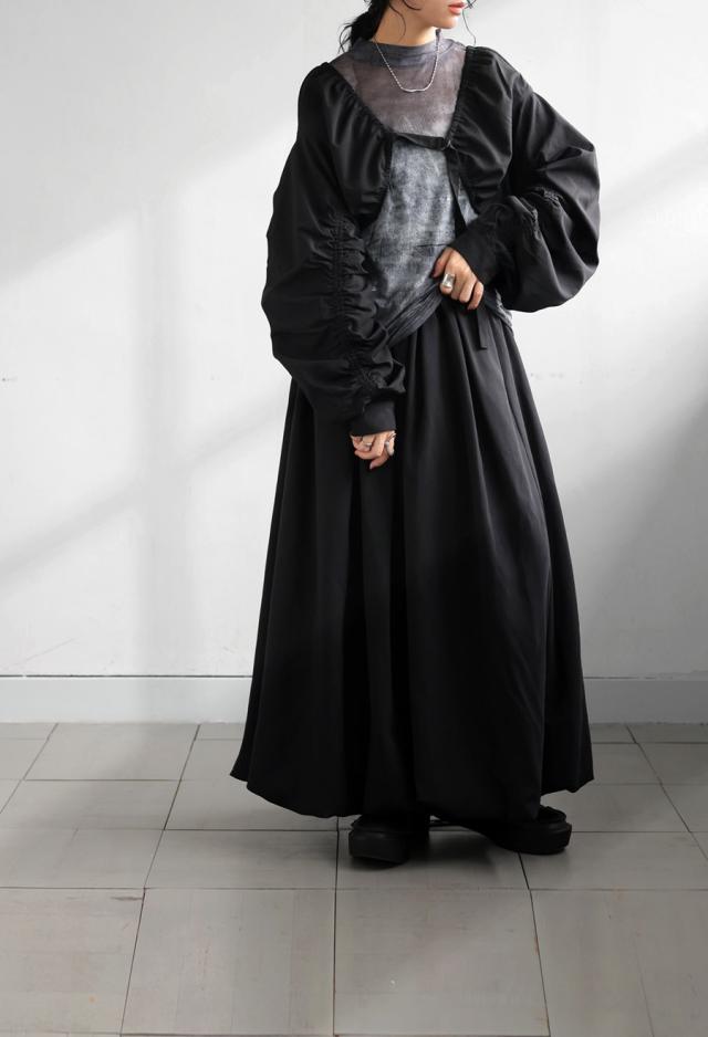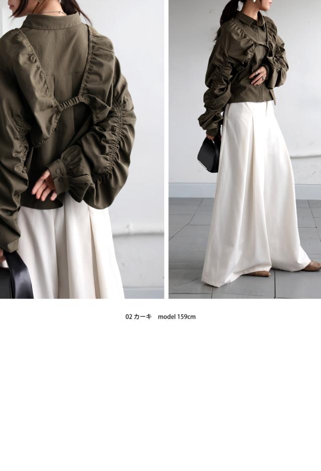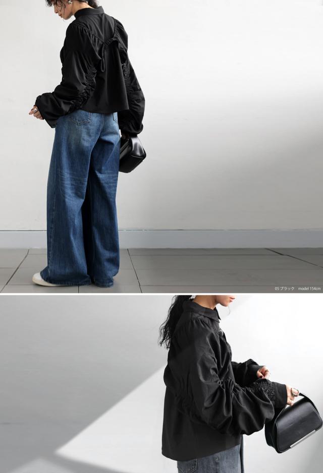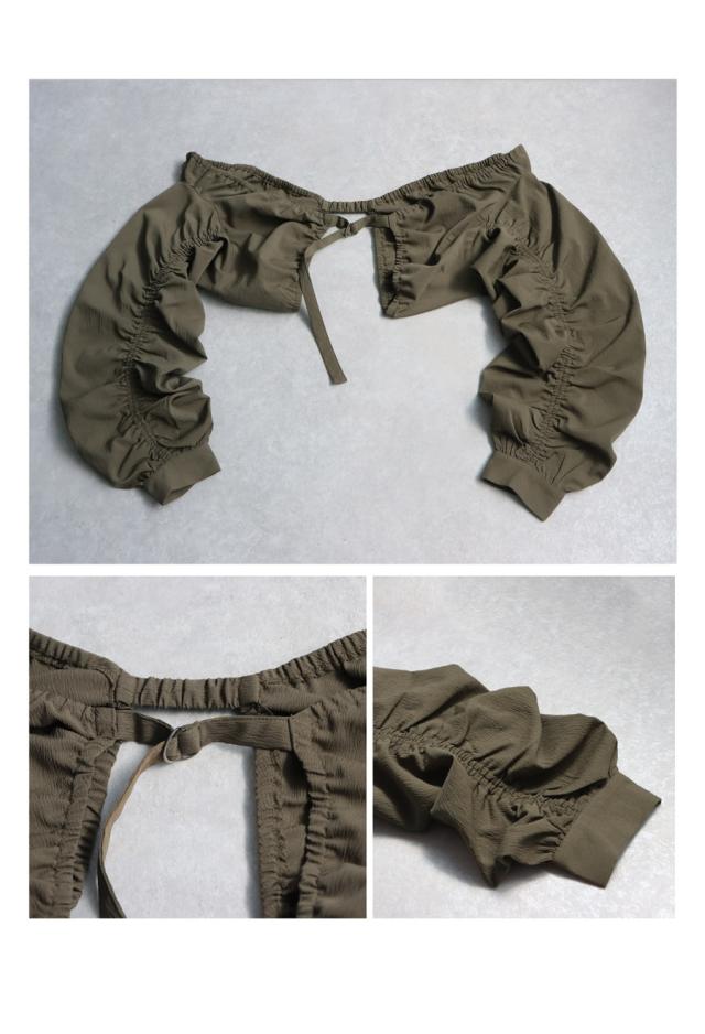 pk-01185 付け袖 長袖 ショート丈 レギュラーカラー 無地 前開き ボタン ベルト 調整可能 3WAY ギャザー レイヤード ゆったり シンプル モード ハイセンス 体型カバー 大きめ