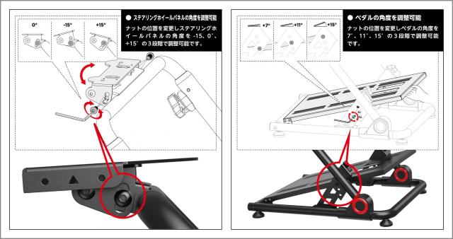 ・ステアリングパネル傾斜:-15°/0°/+15°