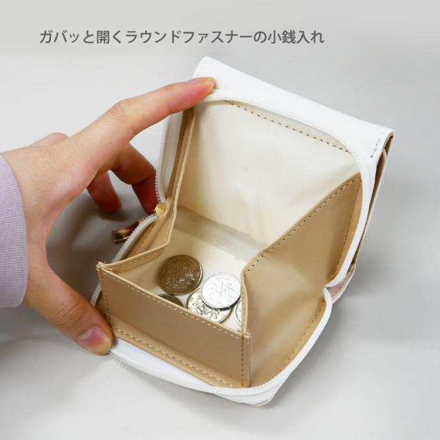 カードポケットは3つと小銭入れは大きく開くラウンドファスナーで、