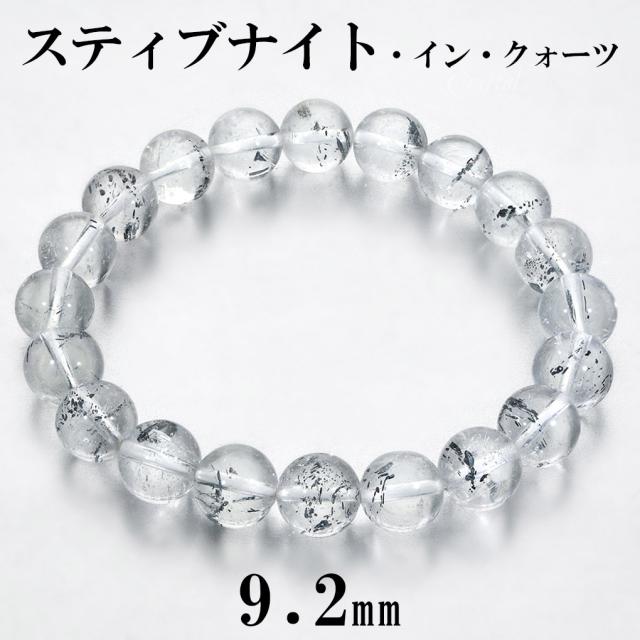 スティブナイト イン クォーツ ブレスレット 9.2mm 16.5cm レディース S サイズ 天然石 パワーストーン 輝安鉱 スティブナイト・イン・クォーツ
