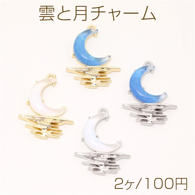雲と月チャーム フレームガラスチャーム ガラスストーンチャーム 1カン付き オーロラカラー 約21×27mm(2ヶ)