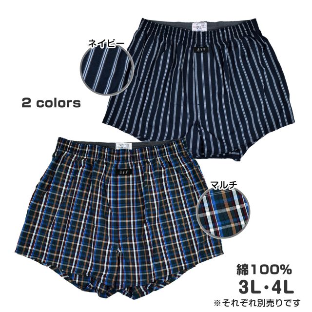 ※ 前開きパンツ インナー アンダーウェア 下着メンズ 男性下着 ビッグサイズ キングサイズ 大判 ストライプ チェック 格子 縦じま
