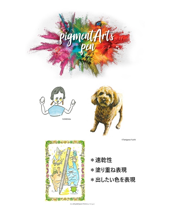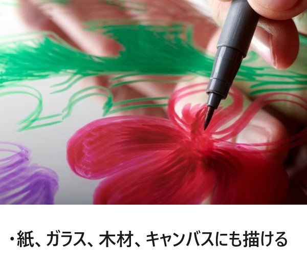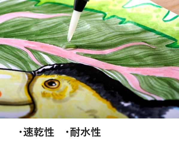 ・速乾性&乾くと耐水性をもち、水彩との併用も可能