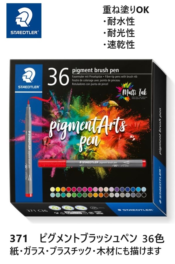 ステッドラー 371 ピグメントブラッシュペン 36色 11800円 絵 サインペン カラーペン 筆 耐光性 耐水性 速乾性 重ね塗り ぼかし 混色 淡い色 送料無料 プレゼント 贈り物