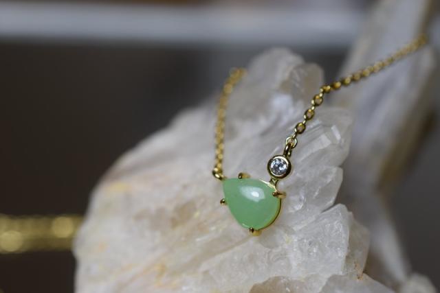 NK56 若緑 ミャンマー産 天然 本翡翠 雫 ネックレス 金属アレルギー対応