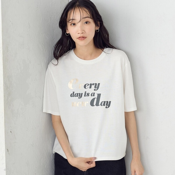 フロントに箔プリントを施したTシャツ。