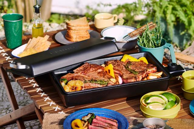 使いやすく片付けやすい、フラットタイプのホットプレートが登場しました。今までにないスマートでギアライクなデザインが魅力的で、お庭でのパーティーやBBQ、キャンプご飯などアウトドアシーンのお料理にぴったりです。