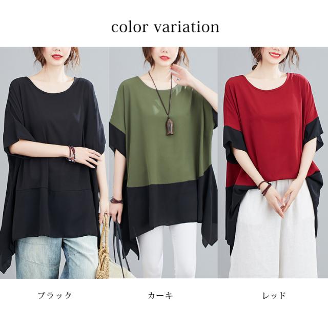 ★☆大きいサイズ レディース チュニックシャツ バイカラー ブラウス 黒 半袖 夏 LL 3L 4L 5L 6L ブラック カーキ レッド☆★