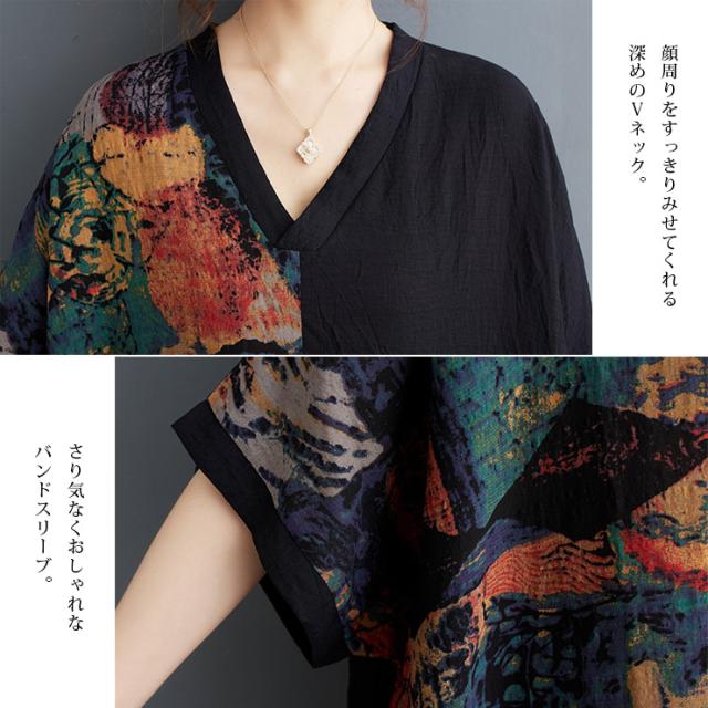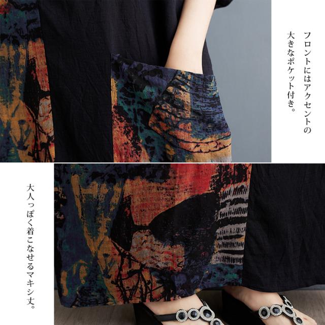 プラスサイズ 体型カバー マキシ丈 細見え ニュアンス柄