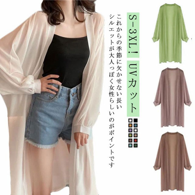 ロングシースルー 薄手 サマー レディース シフォンカーディガン ビーチカーディガン 夏用 水着羽織 水着 ビーチガウン ビーチウェア 海水浴 ビキニ 紫外線防止 日焼け防止 カーディガン 涼しい 春 夏 ロングカーディガン ロング uv UVカット 冷房対策