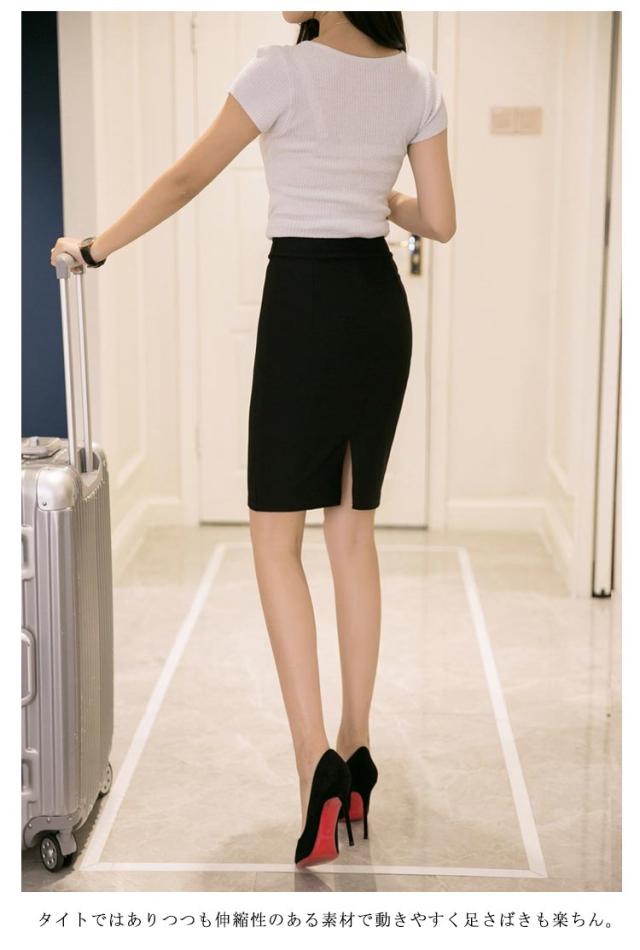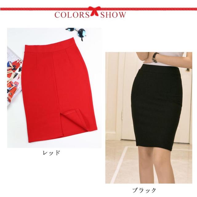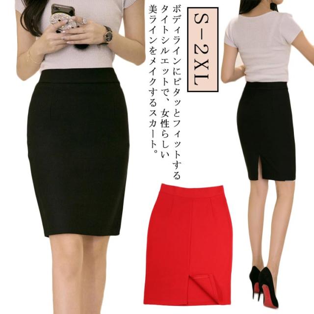 タイトスカート 膝丈 スカート ペンシルスカート スリム オフィス 通勤 スリット入り タイトスカート フォマール ハイウエスト ボトムス 面接 仕事用 着やせ ブラック レッド