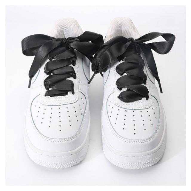 | 足元をかわいくアレンジ♪人気のリボン靴ひも スニーカーや厚底シューズなどの靴ひもを変えるだけで 雰囲気がガラっと変わりとてもおしゃれに♪ シンプルなカラーなのでお洋服にも合わせやすい! | |
