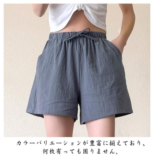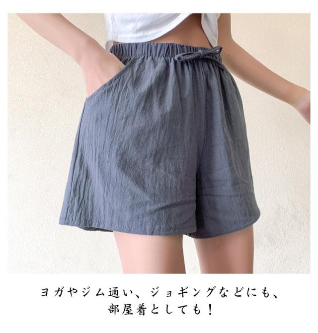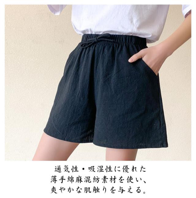 ゆったり キュロット レディース ウエストゴム リネンパンツ ショートパンツ ゆったり 綿麻 レディース 美脚 ワイドパンツ 3分丈 ハーフパンツ 短パン サマー サラサラ ナチュラル シンプル 無地 リラックス ポケット付き お洒落
