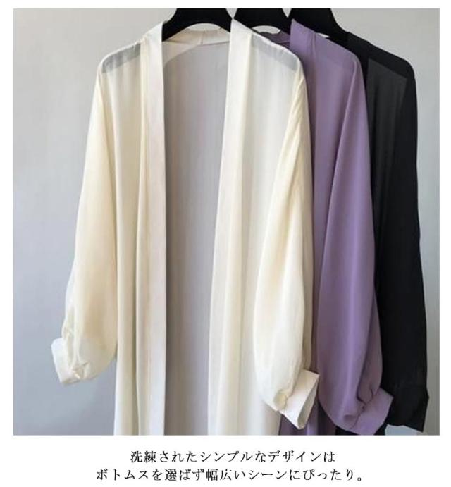 シフォンカーディガン カーディガン レディース ロング ロングカーディガン カーディガン 長袖 カーデ サマーカーディガン 長め丈 長め 夏 紫外線カット 羽織り ロング丈 薄手 涼しい 透け感 きれいめ UVカット 紫外線対策