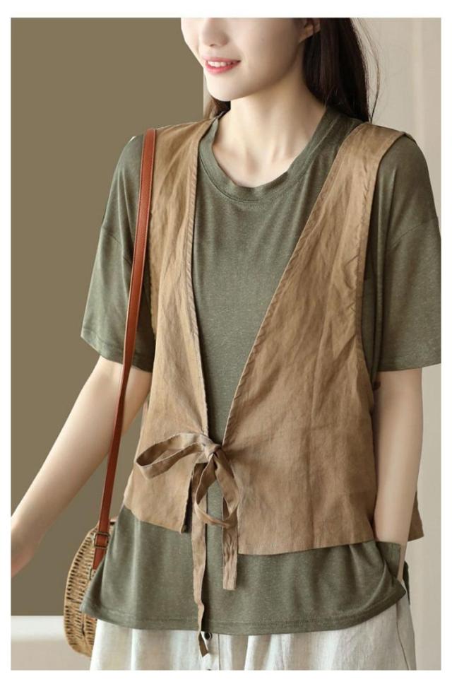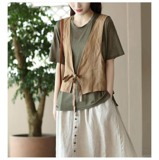 前開ベスト ジレ ゆったり 綿麻 レディース カジュアルベスト ナチュラル ベスト 重ね着 サマーベスト 薄手 カジュアルジレ ベスト 春夏 リボンベスト おしゃれ 夏ベスト リボン シンプル 重ね着 サマージャケット ノースリーブ 羽織り エスニック