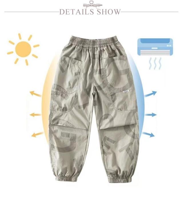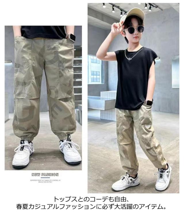 | 4COLORS×6SIZE 男の子用冷感素材カーゴパンツ 薄手速乾素材を使用、ゆったりとしたサイズ感で解放感たっぷりの穿き心地 おしゃれなプリントのデザインがユニークなアクセントを付けました 足裾にゴム入りなので、夏の虫対策にも役立てます 男の子は使いやすく、かっこいいミリタリー風の4色が用意されました トップスとのコーデも自由、春夏カジュアルファッションに必ず大活躍のアイテム | |