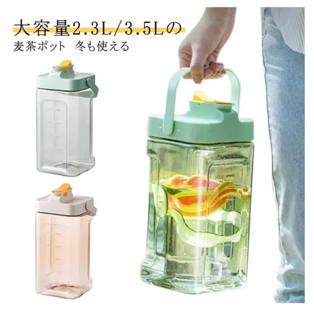 冷水筒 お茶ポット 3.5リットル 麦茶ポット プラスチック 耐熱 2.3L 2.3リットル ピッチャー 3.5l 洗いやすい ロック付き お茶ボトル 麦茶ポット ミニウォーターサーバー 冷蔵庫 ハンドル付き