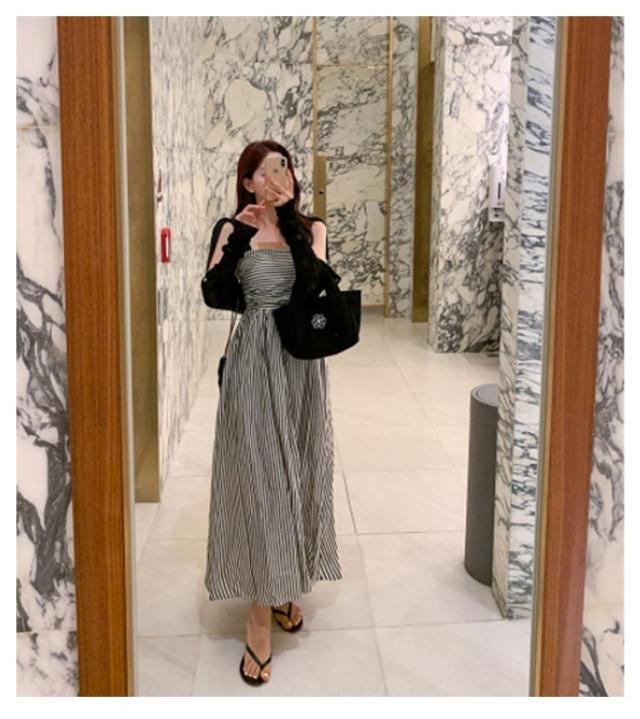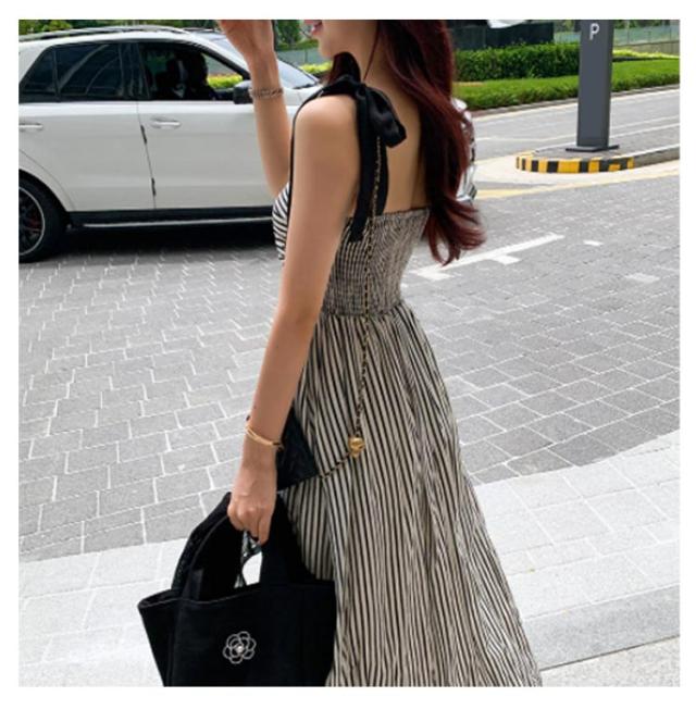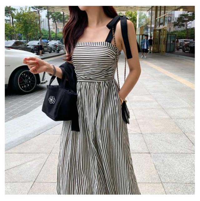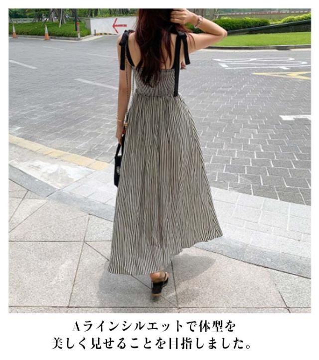 レディース ウエスト切り替え ストライプ柄 夏 キャミワンピース キャミワンピース ワンピース マキシ丈 リボン キャミ ロングワンピース 春夏 カジュアル ドレス きれいめ リゾートワンピ オシャレ 可愛い