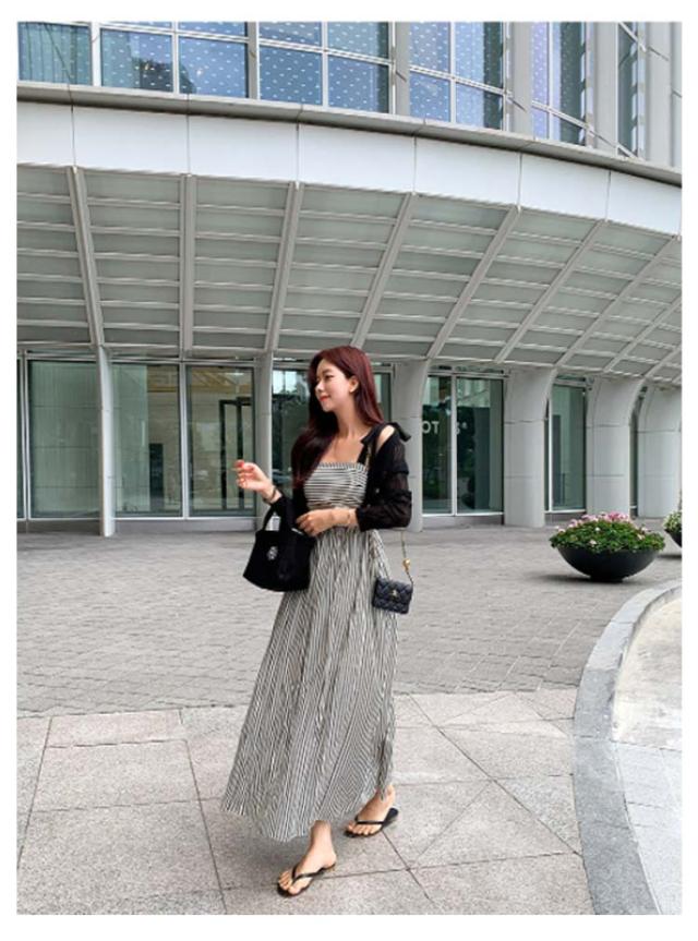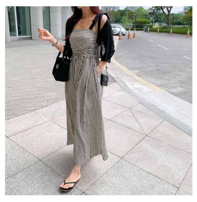 | 細かなストライプの柄がオトナ可愛いキャミワンピースです。 ウエスト位置高めの切り替えでシルエットもきれい見え◎ Aラインシルエットで体型を美しく見せることを目指しました。 肩ひもで長さを調節できるので、着る人の身長に合わせて長さを変えて着用できます。 | |