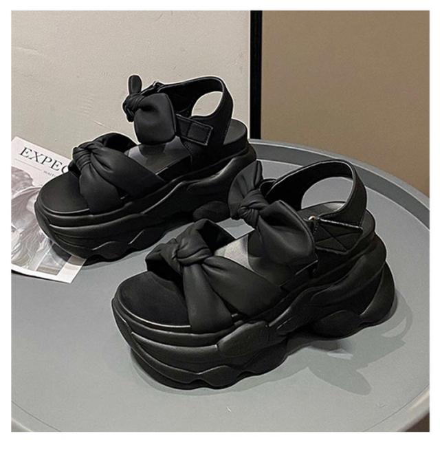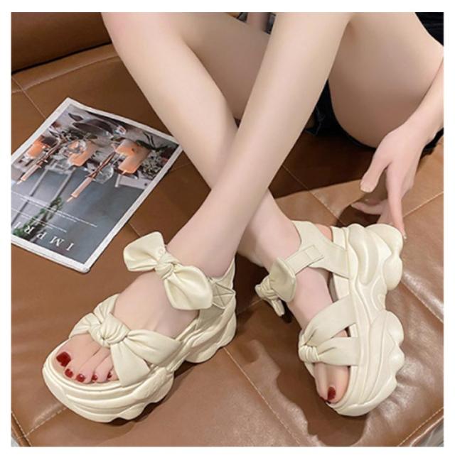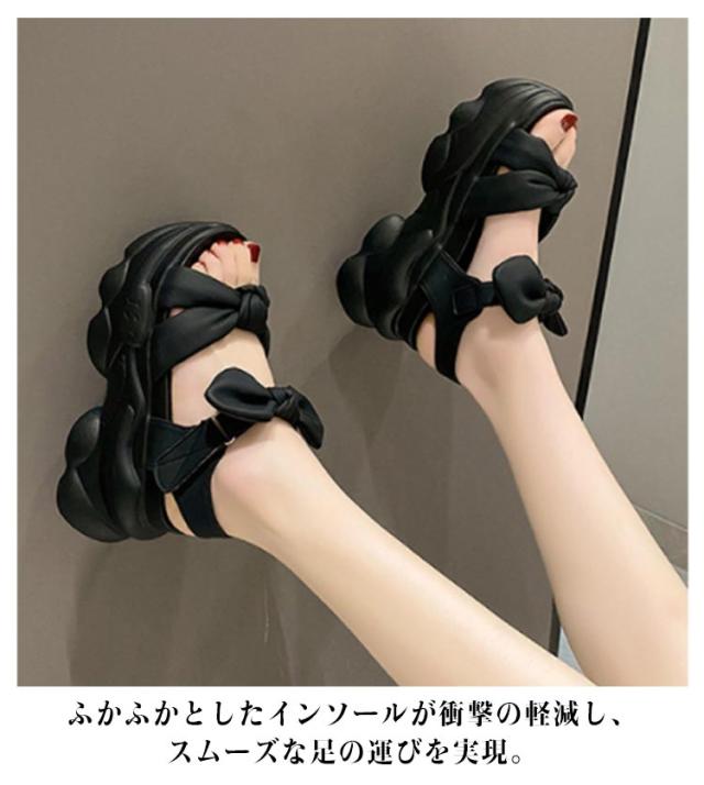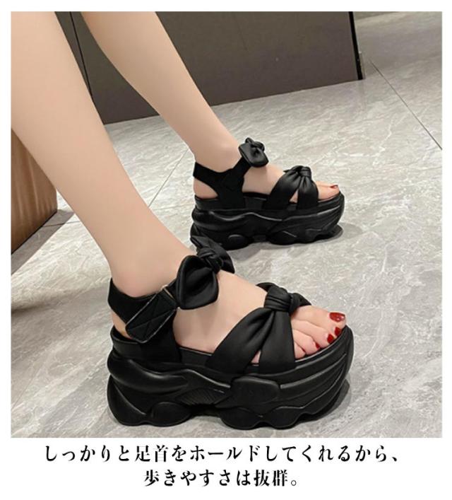 レディース おしゃれ 9cmヒール 軽量 痛くない スポーツサンダル サンダル 厚底 厚底サンダル 歩きやすい フラット 疲れない リボンサンダル 普段使い 夏 フェス おしゃれ 厚底サンダル 黒 アイボリー 靴