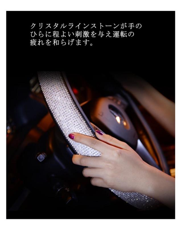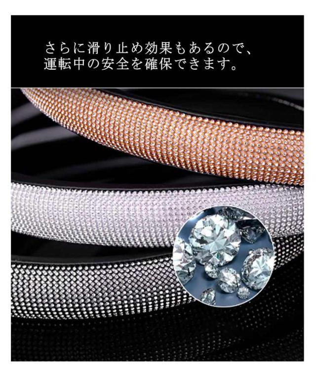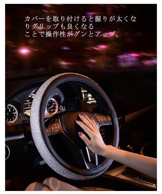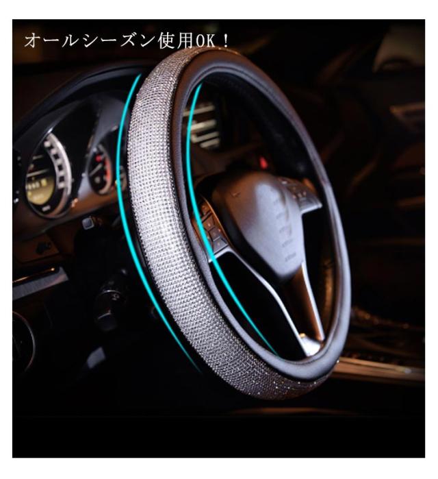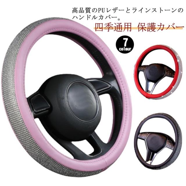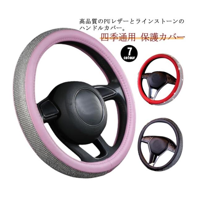 ハンドルカバー 四季通用 軽自動車 PUレザー ステアリングカバー キラキラ 握りやすい ラインストーンハンドルカバー ビジュー付 車 ハンドルカバー 普通車 簡単装着 おしゃれ 可愛い 保護カバー オールシーズ 車用品 カー用品 内装パーツ
