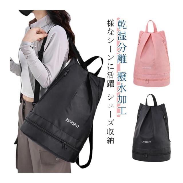 おしゃれ シューズ収納 スイムバッグ 防水 ナップサック 乾湿分離 ジムサック 男女兼用 プールバッグ 水泳バッグ 二層式 大容量 スポーツバッグ スポーツバッグ 防水 軽量 旅行泳ぐ ヨガ フィットネス スポーツ 運動 リュックサック