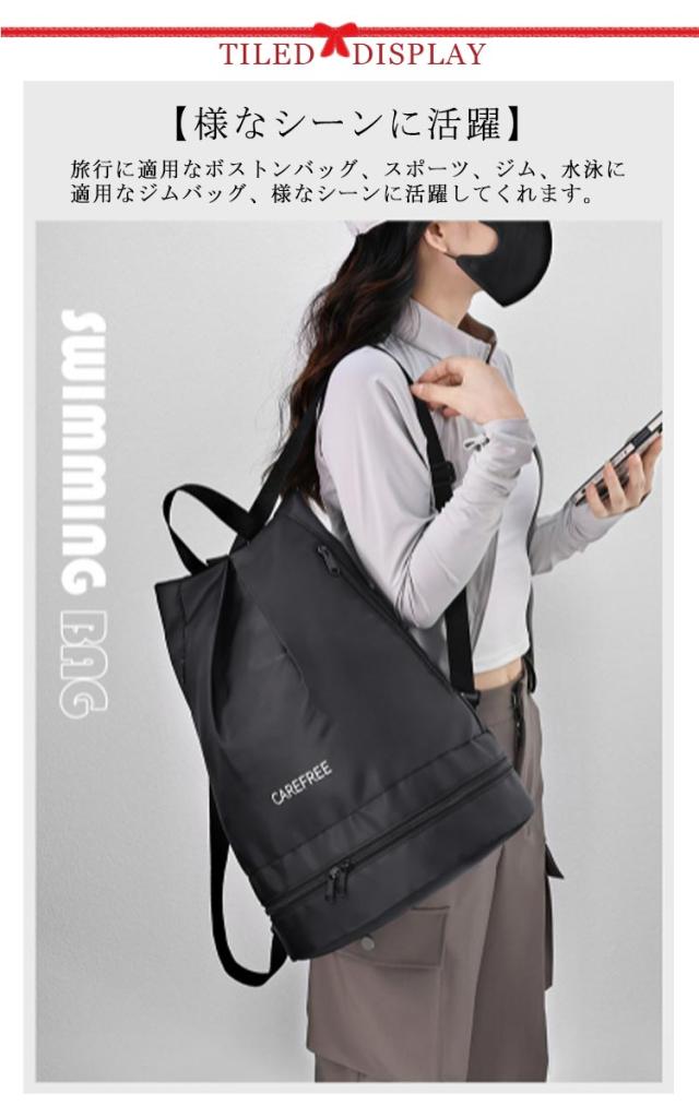 | 【乾湿分離】収納スペースは乾湿分離になっています。濡れた物と乾いた物を分けて収納できる!海水浴、温泉、マリンスポーツに行く時、このスポーツバッグを選ぶのは間違いなし! 【シューズ収納】バッグは上段と下段に仕切りがあるから、シューズとウェアを別々に収納可能! 【撥水加工】耐水性に優れた材質で使っているため、雨や水に濡れるのを防ぐことができます。 【様なシーンに活躍】旅行に適用なボストンバッグ、スポーツ、ジム、水泳に適用なジムバッグ、様なシーンに活躍してくれます。通勤、通学にはもちろん、普段のお出掛けや旅行、アウトドアなど幅広いシーンで活躍すること間違いなしのアイテムです。 | |
