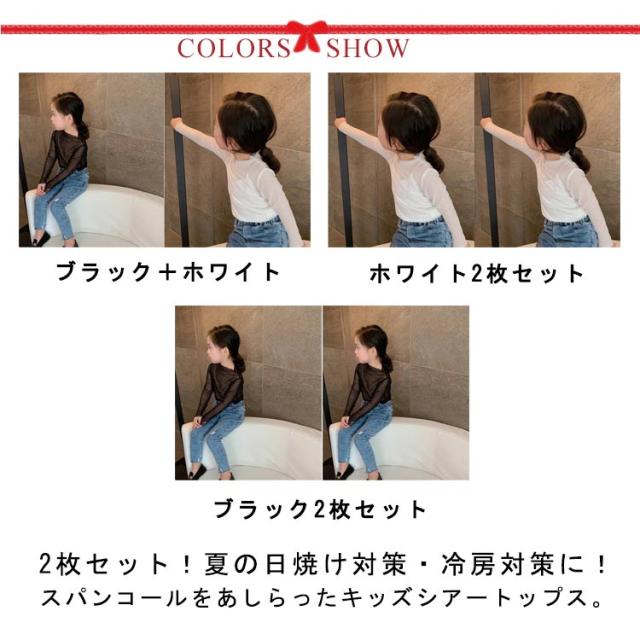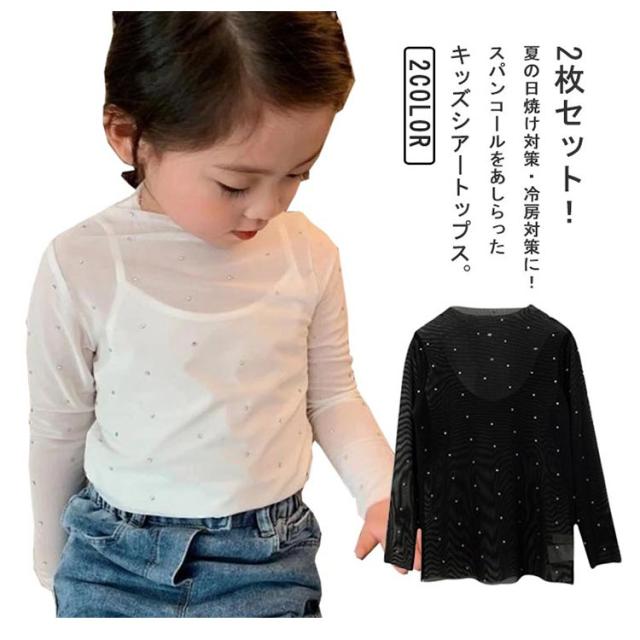 2枚セット! 夏 透け 日焼け対策 シアートップス 冷房対策 女の子 薄手 トップス ラッシュガード スパンコール キッズ きらきら 長袖Tシャツ ベビー 2枚セット! 男の子 可愛い サマー カットソー メッシュ 吸水速乾 無地 おしゃれ