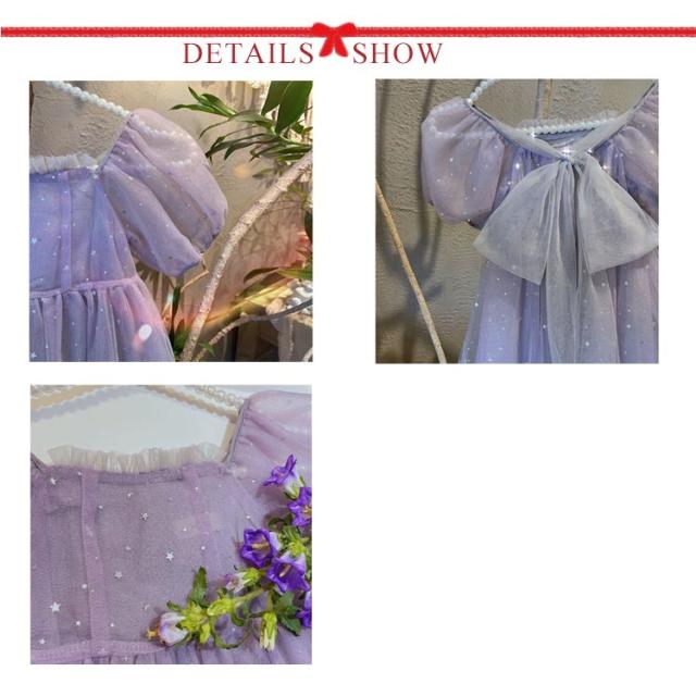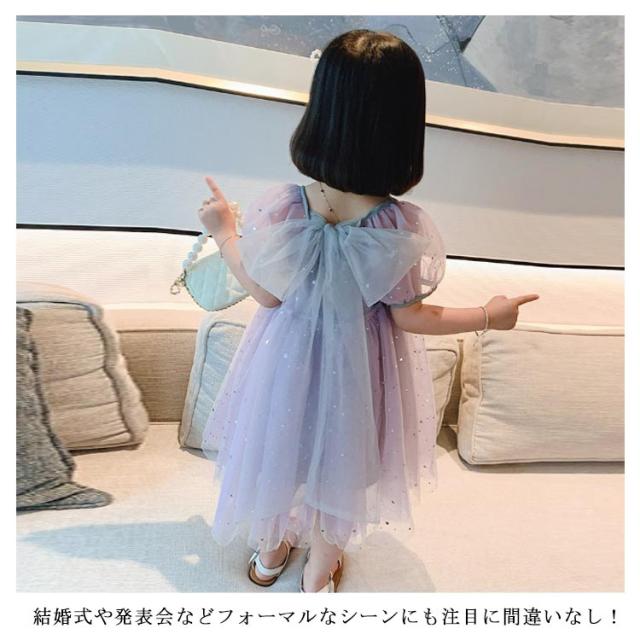 | キラキラな星柄チュールワンピース! 肌触りが良く柔らかい綿素材感が、着心地も軽く快適に着用いただけます。 バックのリボンデザインががワンポイント◎ ふんわりした袖も女子力UP! ふんわり広がるシルエットがかわいい♪ 結婚式や発表会などフォーマルなシーンにも注目に間違いなし!デイリーにもお出かけにも着やすいコーデいらずのシンプルデザイン。 | |