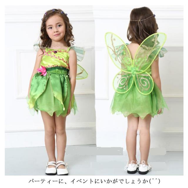| ピーターパンのティンカーベルのような妖精のかわいい衣装です。 ドレス+羽の3点セット☆ ウエスト部分はゴムです。 パーティーに、イベントにいかがでしょうか(^^) | |