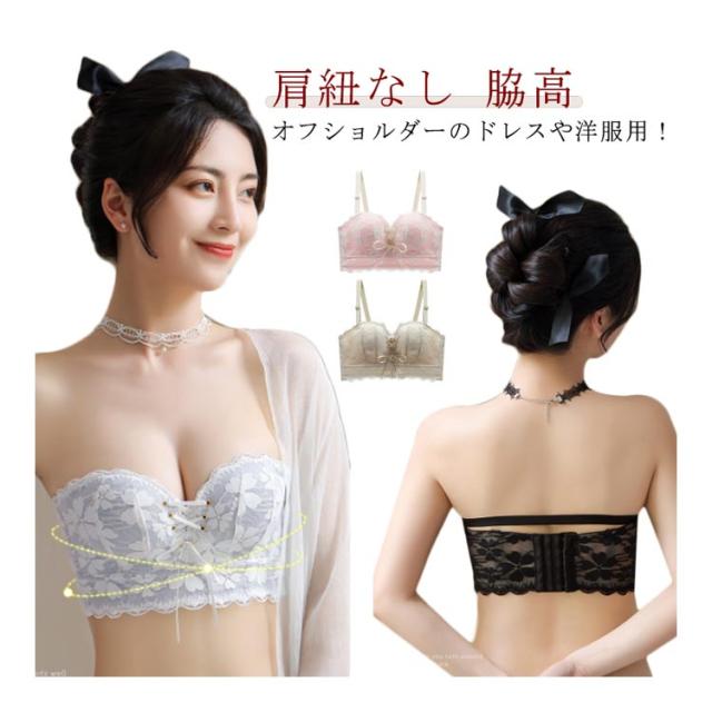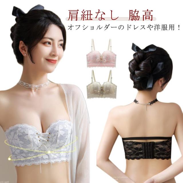 ノンワイヤー コルセットブラ ストラップレスブラジャー 盛れる ブラジャー 脇高 ストラップレスブラ 可愛い 谷間 バストアップ ワイヤレス オフショルダー用ブラジャー おしゃれ ストラップレスブラジャー 育乳 レース フロントリボン 下着 ワイヤーなし