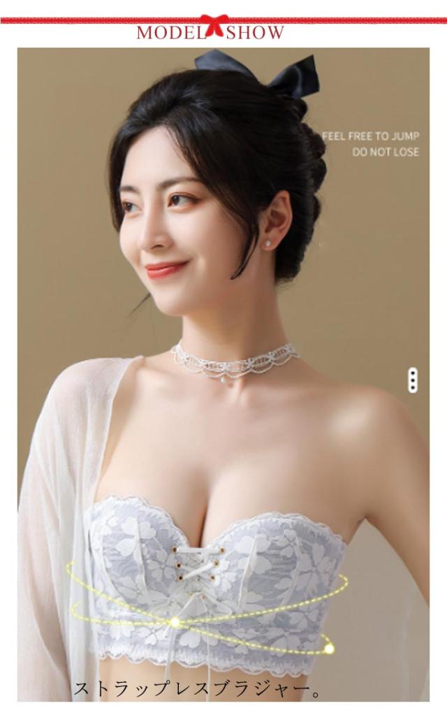 | オフショルダーのドレスや洋服用!ストラップレスブラジャー。 ノンワイヤーで締め付け感のないストレスフリーな着け心地です。 胸元レースアップで谷間メイク!バストを自然に持ち上げ、強調する編み上げデザイン。見た目のかわいさと機能性を備えた嬉しい仕様でバストが美しく見えるようになってます♪ ストラップ付の2way仕様!服に合わせて変えられる。 バックベルトに隠れた補助ストラップ付き、自分のサイズに合わせて調節ができるので普段のプラよりしっかりフィット。 ドレススタイルだけじやない!オフショルやダンスや結婚式の衣装まで大活躍! | |