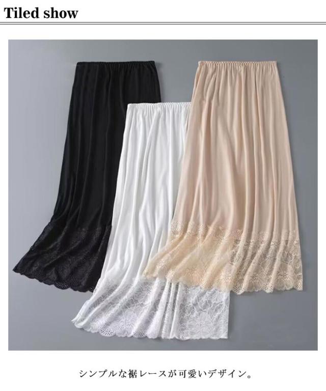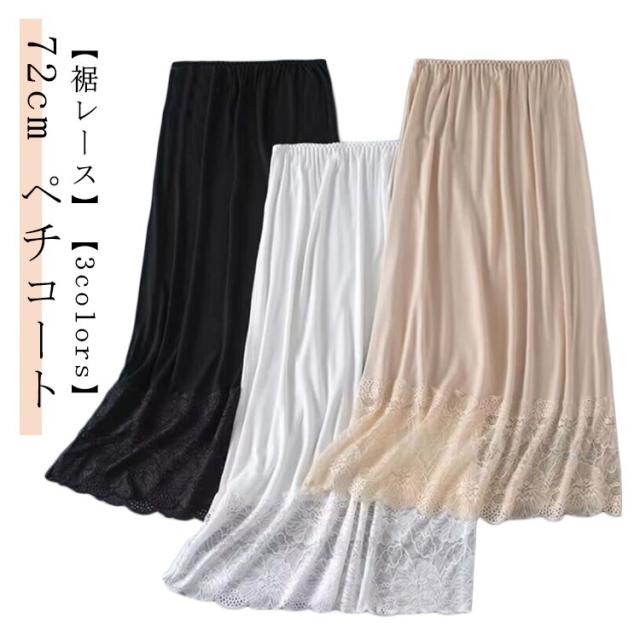 ロング丈 透けない ロングペチコート 裾レース 透け防止 72cm ロングペチコート ペチスカート レディース ペチコート 重ね着 おしゃれ 裾レース付きペチスカート シンプル ワンピース インナー レイヤード