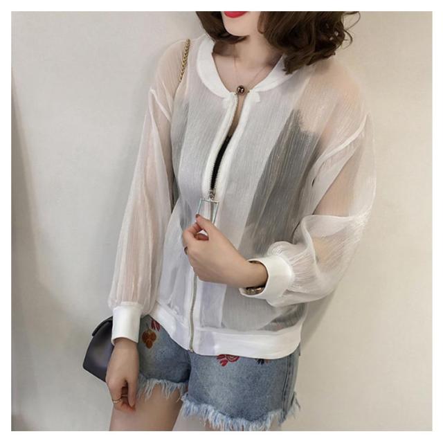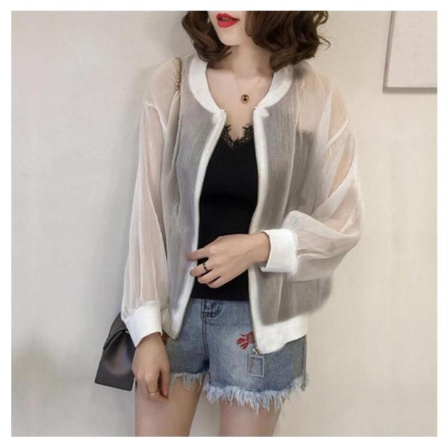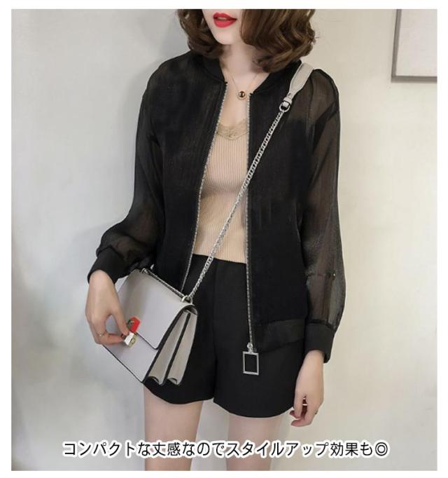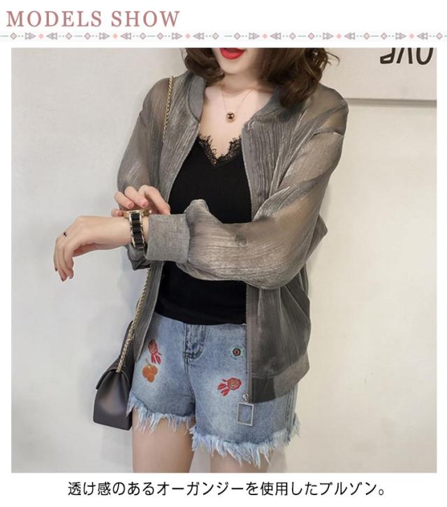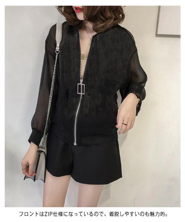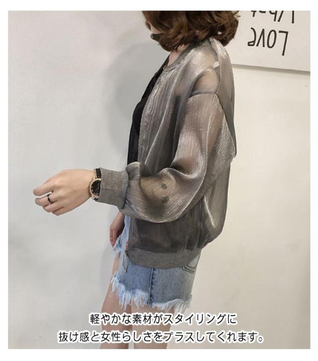 シアーブルゾン ノーカラー シースルー シアーブルゾン ライトアウター レディース 軽い ジャケット オーガンジー ジップアップ 羽織り 長袖 ショート シアー 薄手 紫外線対策 軽量 アウター 冷房対策 カジュアル モード 送料無料
