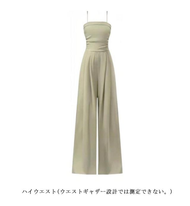 ロングパンツ 脚長効果 おしゃれ サロペット 夏 サロペット サロペット ハイウエスト パンツ ワイドパンツ カジュアル ジャンプスーツ オーバーオール ボトムス オールインワン 女子 フェミニン かわいい つなぎ キャミソール 大人 可愛い 韓国ファッション S M