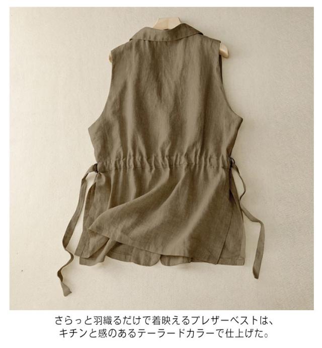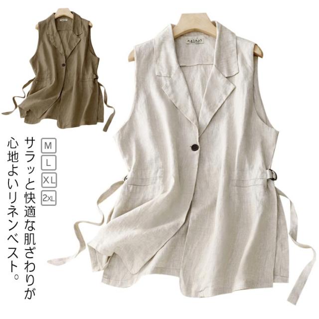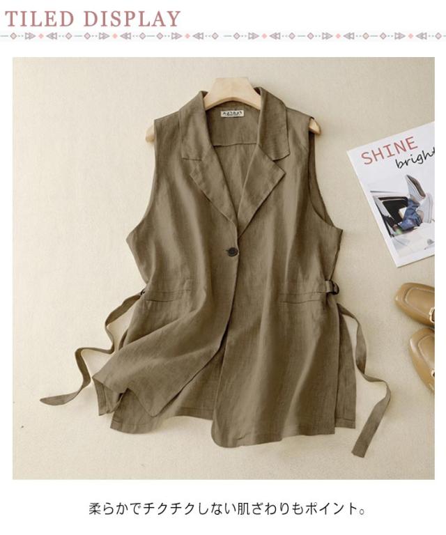 リネン ジャケット アウター ノースリーブ ジレ 送料無料 ミドル丈 ベスト ブレザーベスト 綿麻 ジレ 羽織り 春 夏 秋 レディース ノースリーブ テーラードジャケット ジレベスト オフィスカジュアル OL