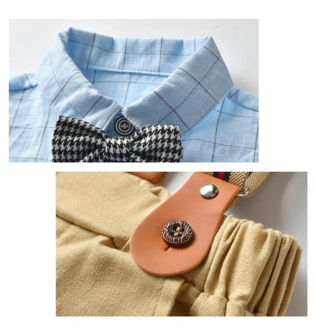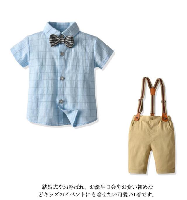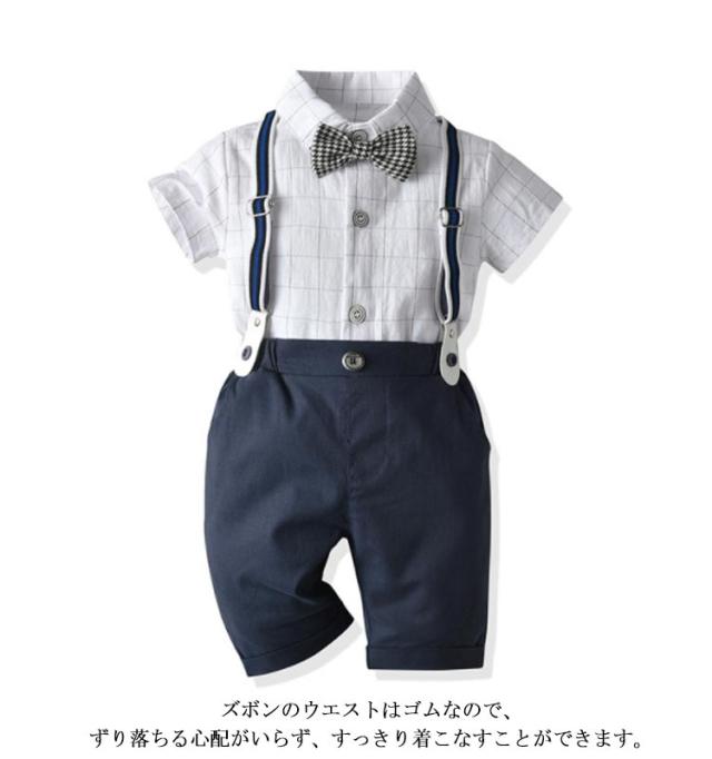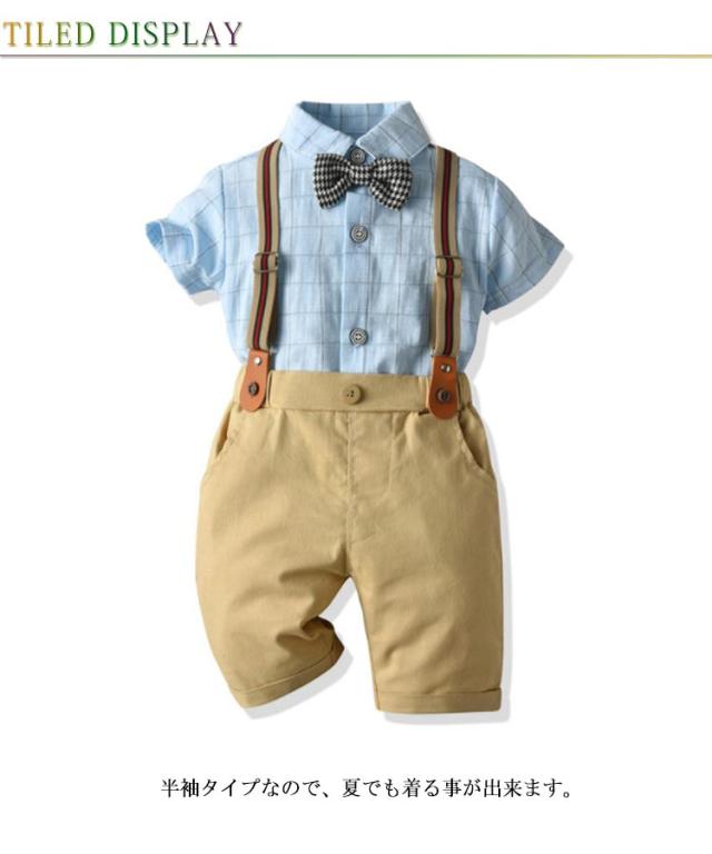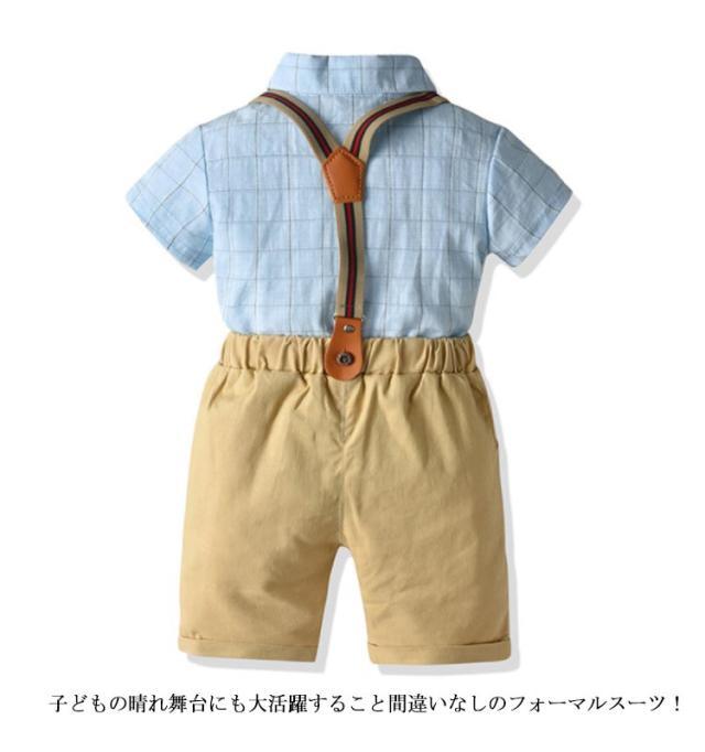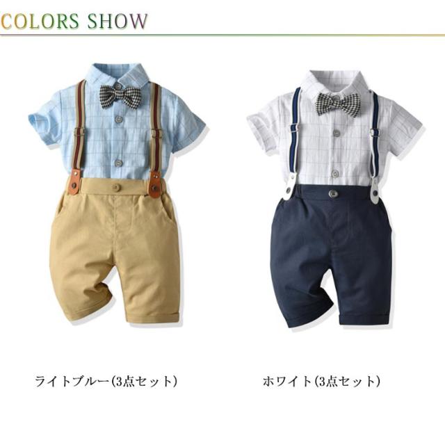 子供服 男の子 スーツ ベビー フォーマル スーツ ベビー服 紳士風 フォーマルスーツ 3点セット 半袖シャツ ショートパンツ 蝶ネクタイ セットアップ 赤ちゃん 子供 キッズ 上下セット サスペンダー付き おしゃれ 出産祝い 結婚式 誕生日 お宮参り 80-120cm 送料無料