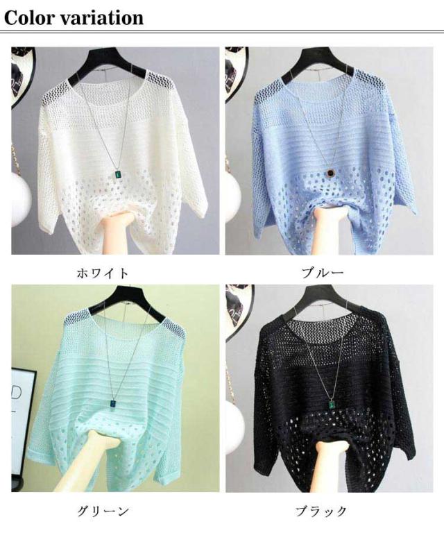 透け感 無地 ニットソー シースルー編みニット 薄手 プルオーバー 透け編み クルーネック 可愛い 女性 シースルー サマーニット 日焼け対策 ゆったり 体型カバー 無地 シンプル トップス 夏 UVカット 重ね着 ニットトップス 春夏 大きサイズ 着?せ 大人 長袖