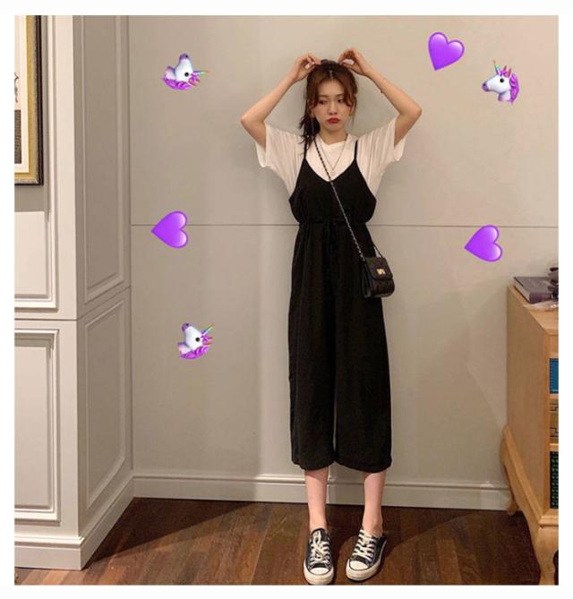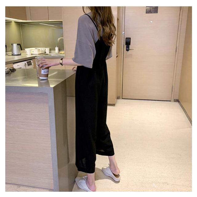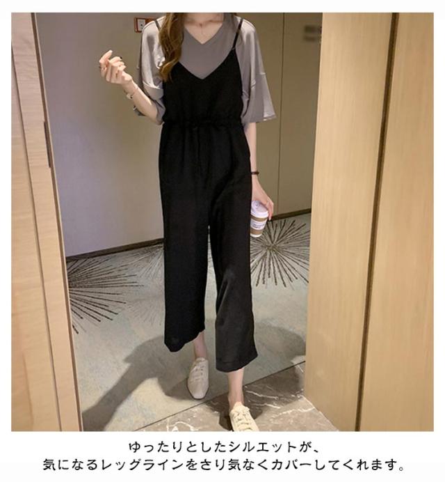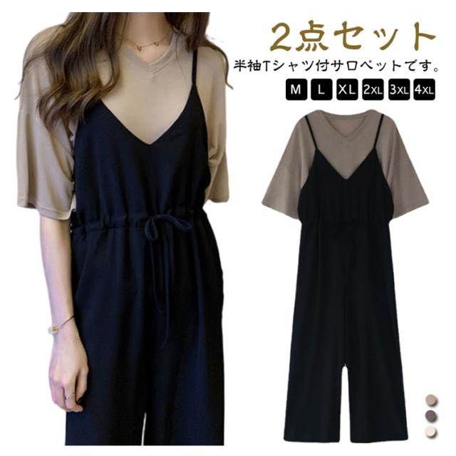 ワイドパンツ Tシャツ カジュアル サロペットパンツ レディース セットアップ 夏 オールインワン 上下セット 可愛い ジャンプスーツ サロペット 韓国風 おしゃれ 通勤 ゆったり 大きいサイズ 体型カバー 2点セット キレイめ 学生 通学 半袖