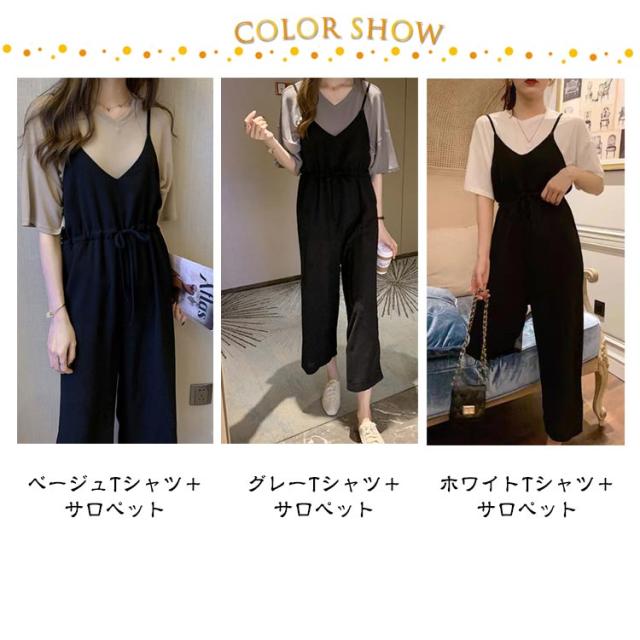 | 色 | ホワイトTシャツ+サロペット ベージュTシャツ+サロペット グレーTシャツ+サロペット |