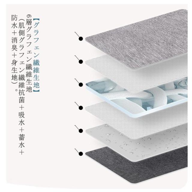 | 【グラフェン繊維生地】6層グラフェン繊維生地(肌側グラフェン繊維抗菌+吸水+蓄水+防水+消臭+身生地)。 【目立ちにくい吸水帯】見た目は普通パンツに見えますが、表側からは吸水帯が目立ちません。さらに吸水帯の縫い合には「滲み出し防止」の工夫をしていて、しっかり漏れ防止です。 【抜群な通気性・再利用可能】快適で通気性の良い綿素材加工されています。長時間利用でも蒸れずに快適です。丸洗い可能で、再利用可能です。 【適用シーン】おねしょはもちろん、旅行や外出の時にも不安な方、介護用や入院時で介助が必要な時にも対応可能です。オムツに抵抗がある、失禁のお悩みがある方におすすめです。 | |