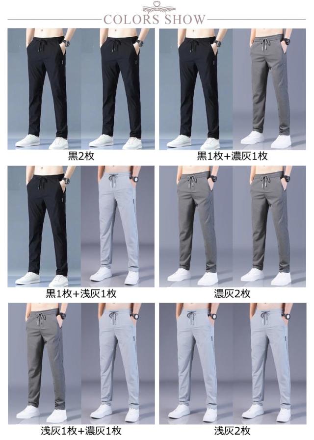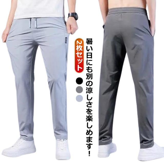 メンズ ゴルフパンツ 夏 アイスシルクロングパンツ アイスシルクパンツ 接触冷感 パンツ ゴルフパンツ カジュアルパンツ ゴルフウェア 薄手 ストレッチパンツ 細身 お得な2枚セット!アイスシルク 速乾 薄手 スキニーパンツ ストレッチ 軽量 ズボン