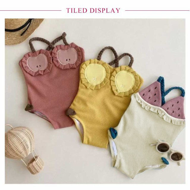 | とてもかわいい女の子の水着ワンピースです。 海やプールだけでなく、スイミングスクールや幼稚園、保育園にも最適。 フルーツのデザインはキュート♪ お嬢様にプレゼントしてきっと喜んでくれるよ♪ | |